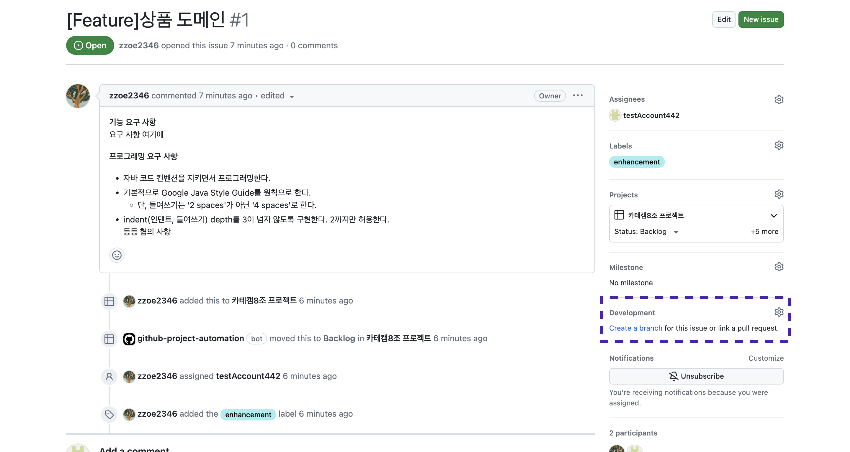 Assignee 에 본인의 아이콘이 있는 모습을 확인
