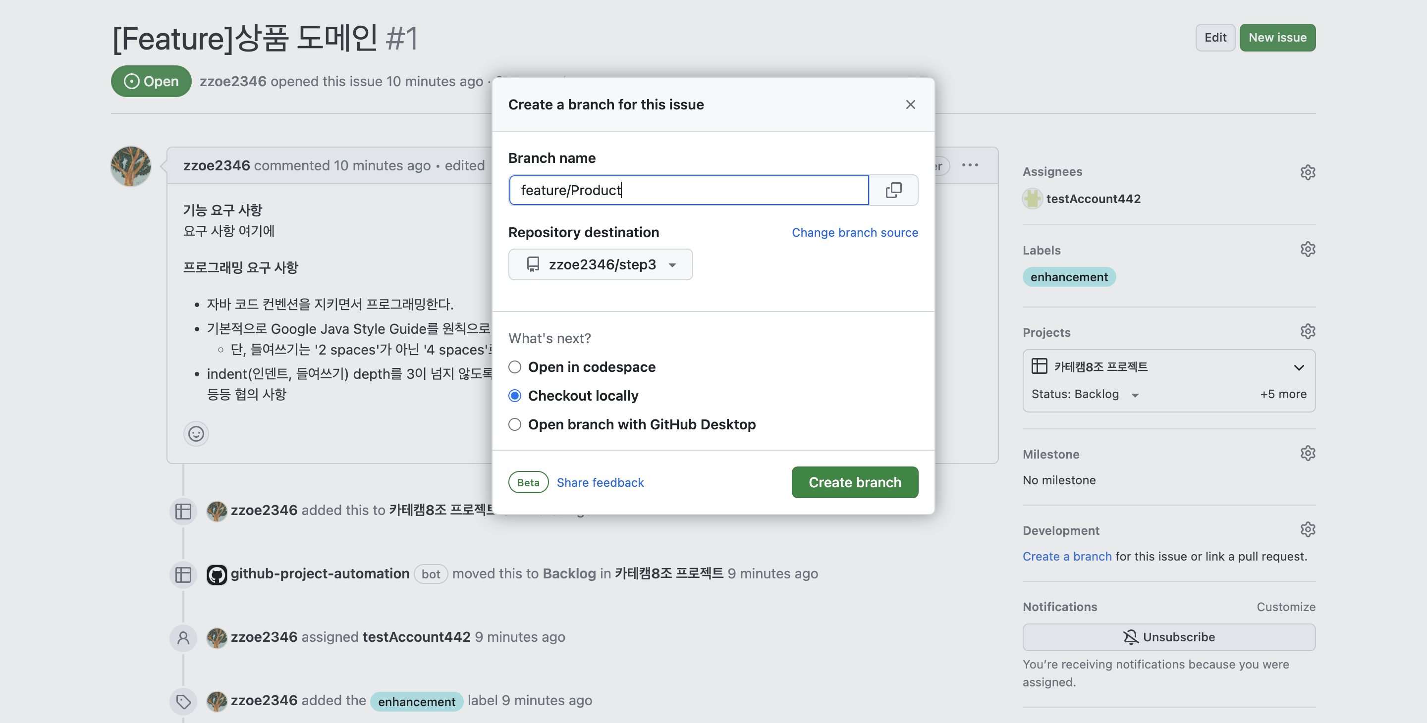 아래와 같이 브랜치가 변경된거 확인! 이제 코딩하면 됩니다.