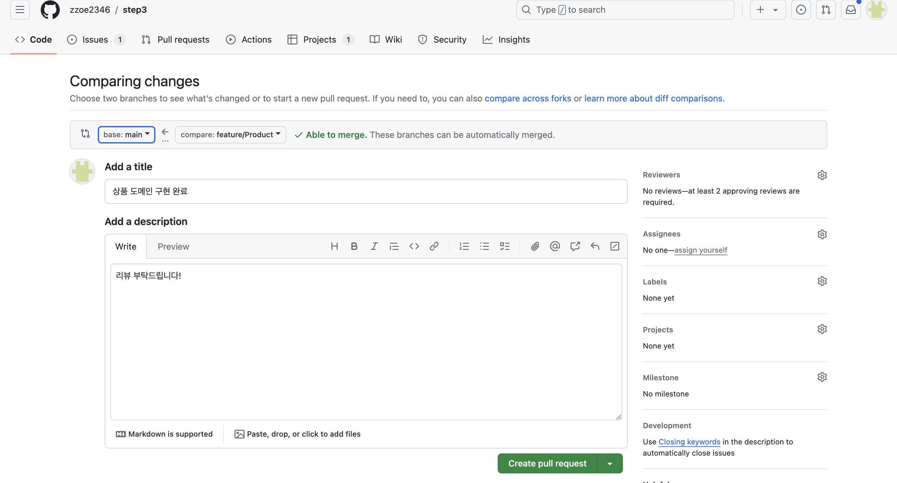 5. 팀원에게 알려서 리뷰 받고 수정할거 있으면 수정